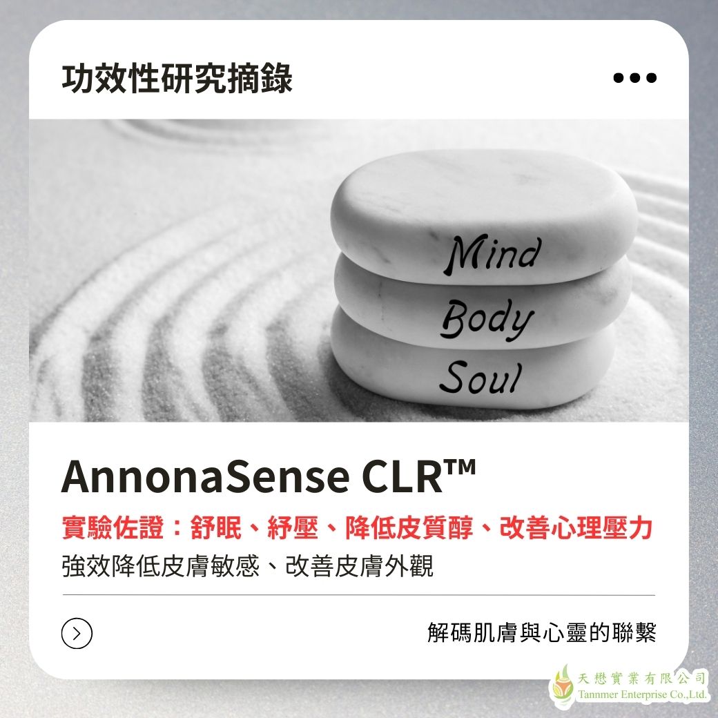 CLR 進行了一項新研究,結果顯示 AnnonaSense CLR™ 有效降低皮質醇、改善壓力與睡眠品質,皮膚紓壓、舒敏、效果卓越!